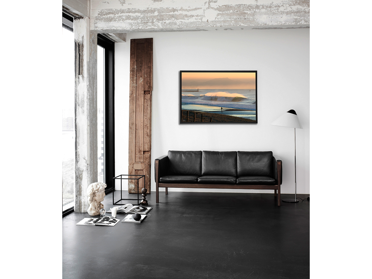 You have the possibility to choose the upmarket with the option "Lamination + floater frame"; That is to say a laminating of the plasticized print (glossy plasticization) on a support in aluminum dibond (3mm). The dibond is integrated into a 3 cm deep matt black aluminum floater frame for optimal rendering. It is a finished product, ready to hang on the wall, several anchor points.