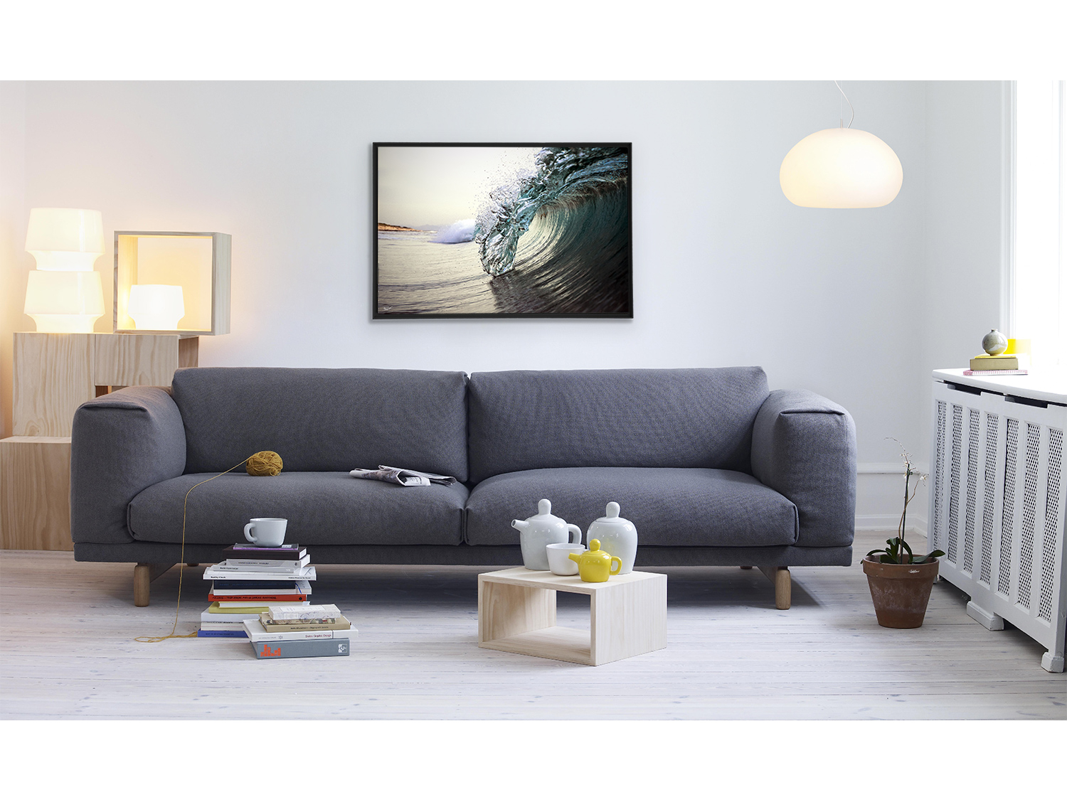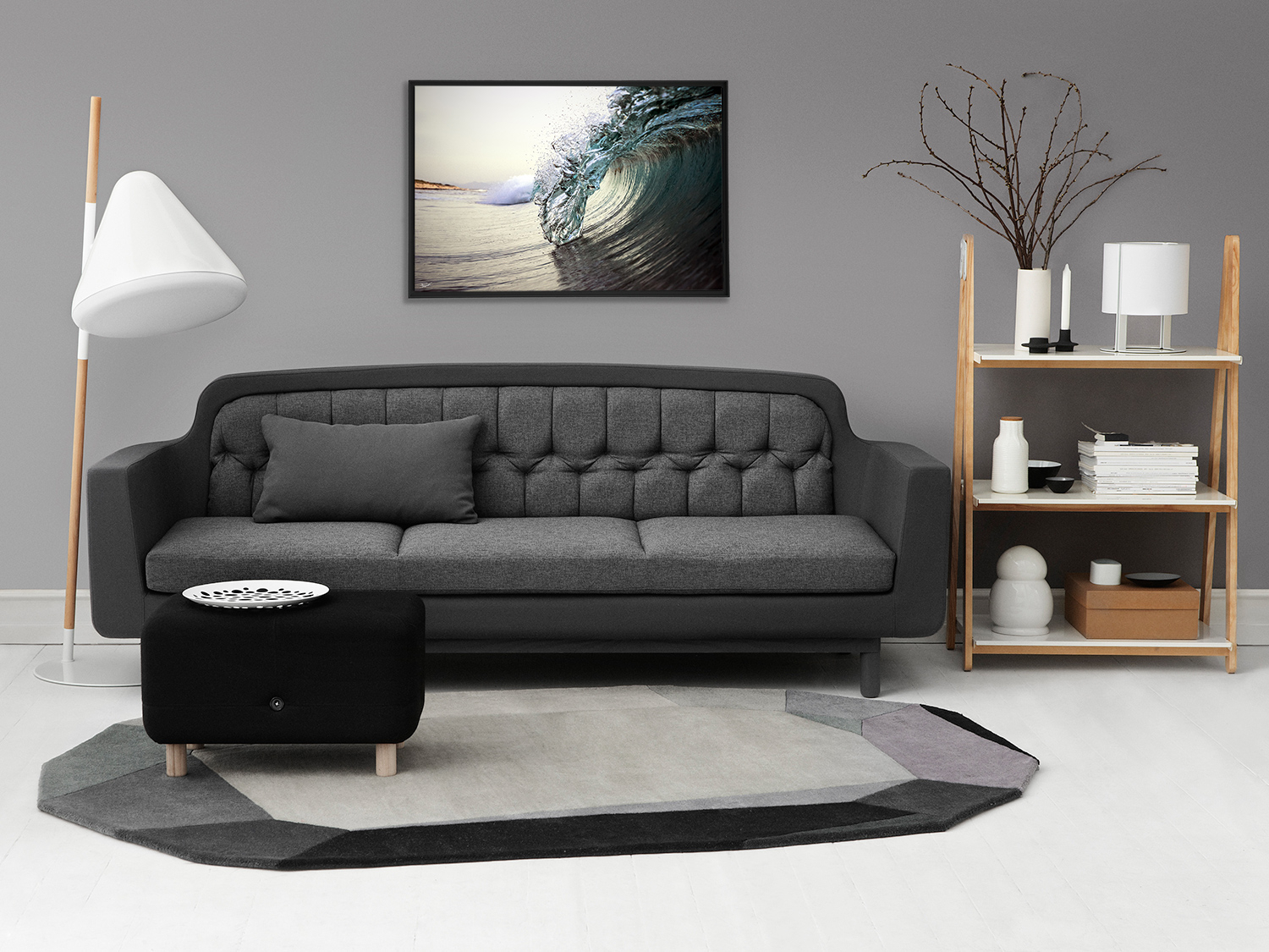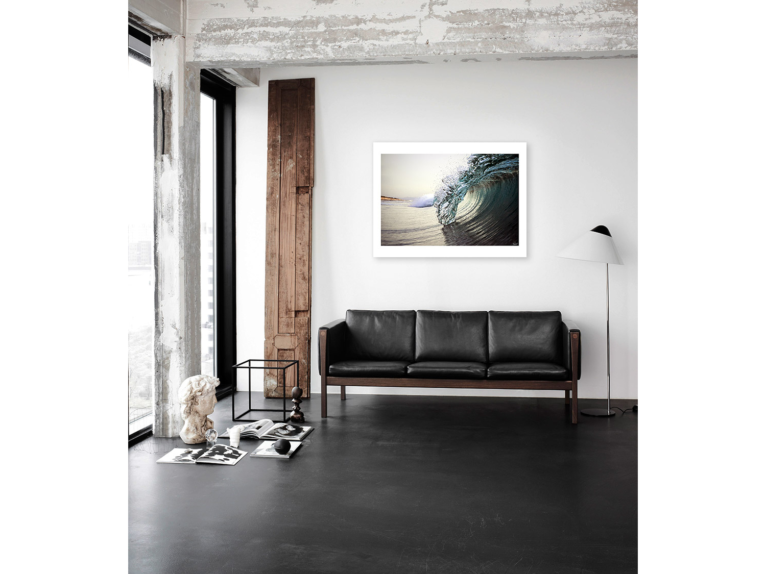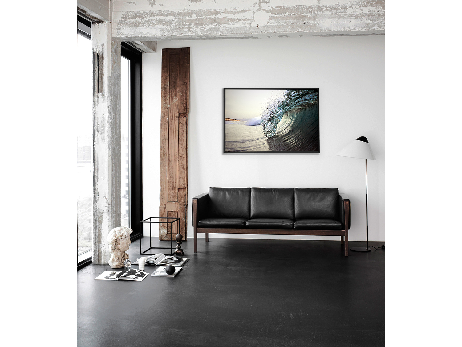 Floater frame in matt black aluminum.