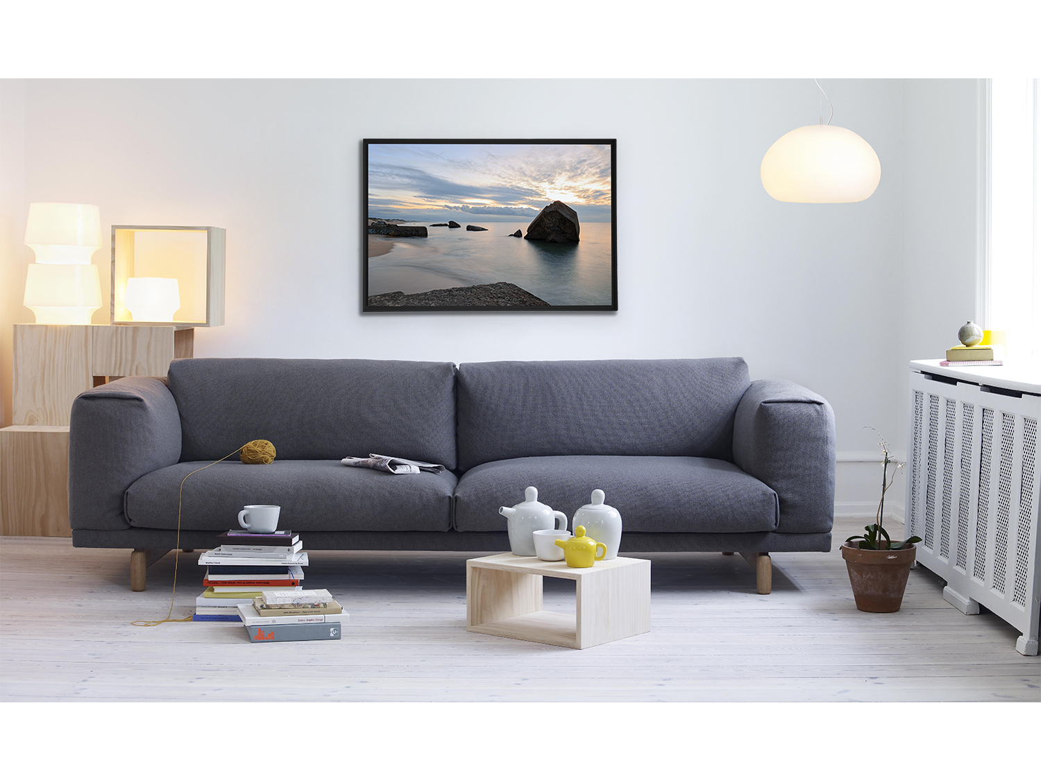 You have the possibility to choose the upmarket with the option "Lamination + floater frame"; That is to say a laminating of the plasticized print (glossy plasticization) on a support in aluminum dibond (3mm). The dibond is integrated into a 3 cm deep matt black aluminum floater frame for optimal rendering. It is a finished product, ready to hang on the wall, several anchor points.