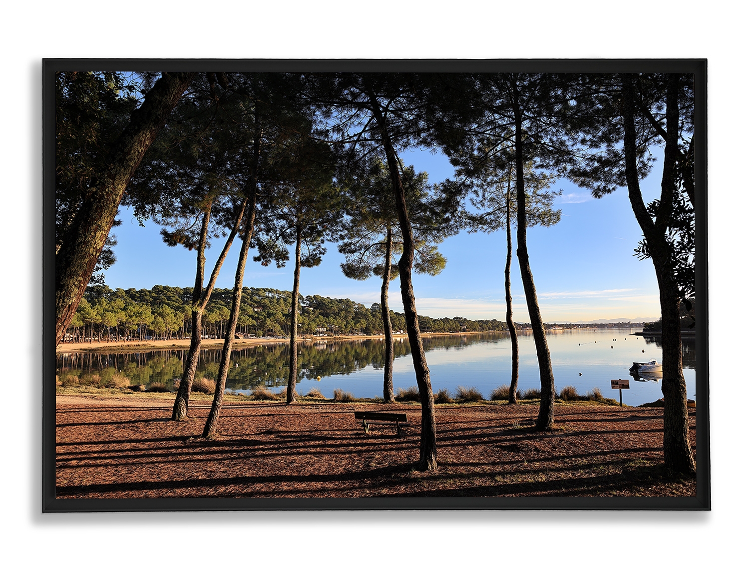You have the possibility to choose the upmarket with the option "Lamination + floater frame"; That is to say a laminating of the plasticized print (glossy plasticization) on a support in aluminum dibond (3mm). The dibond is integrated into a 3 cm deep matt black aluminum floater frame for optimal rendering. It is a finished product, ready to hang on the wall, several anchor points.