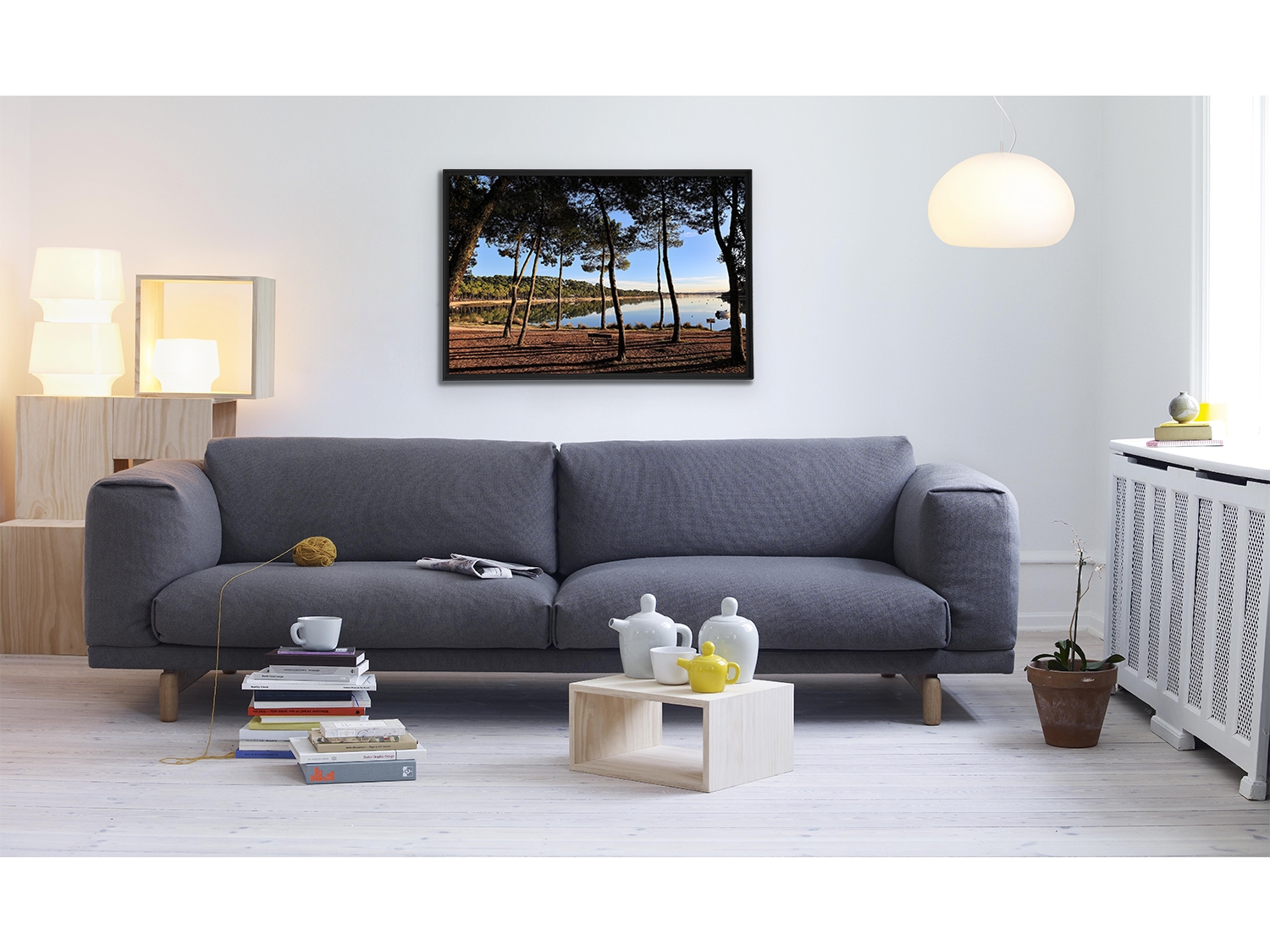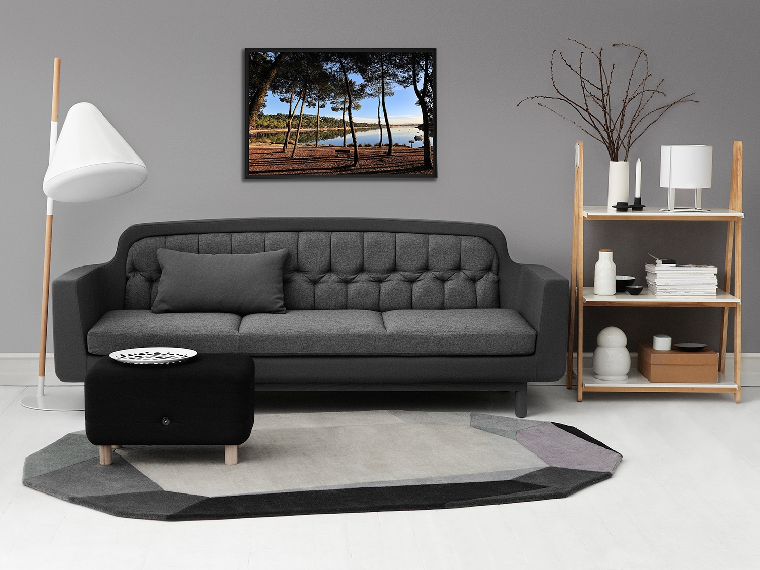 Floater frame in matt black aluminum.