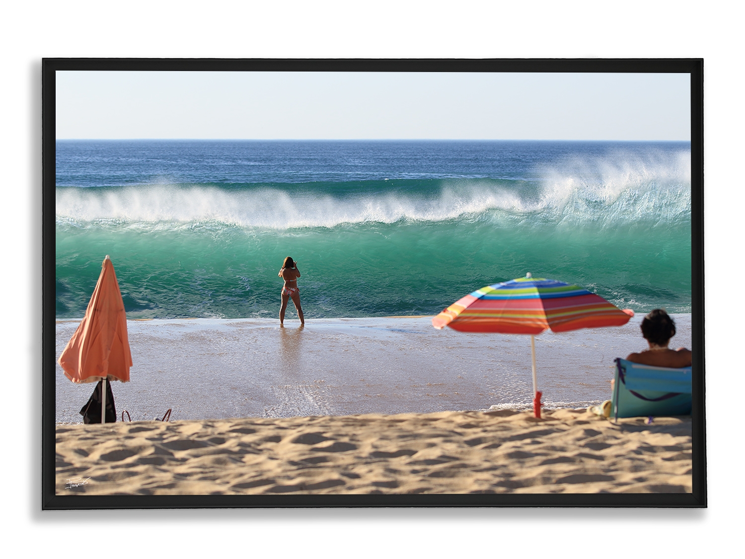 You have the possibility to choose the upmarket with the option "Lamination + floater frame"; That is to say a laminating of the plasticized print (glossy plasticization) on a support in aluminum dibond (3mm). The dibond is integrated into a 3 cm deep matt black aluminum floater frame for optimal rendering. It is a finished product, ready to hang on the wall, several anchor points.