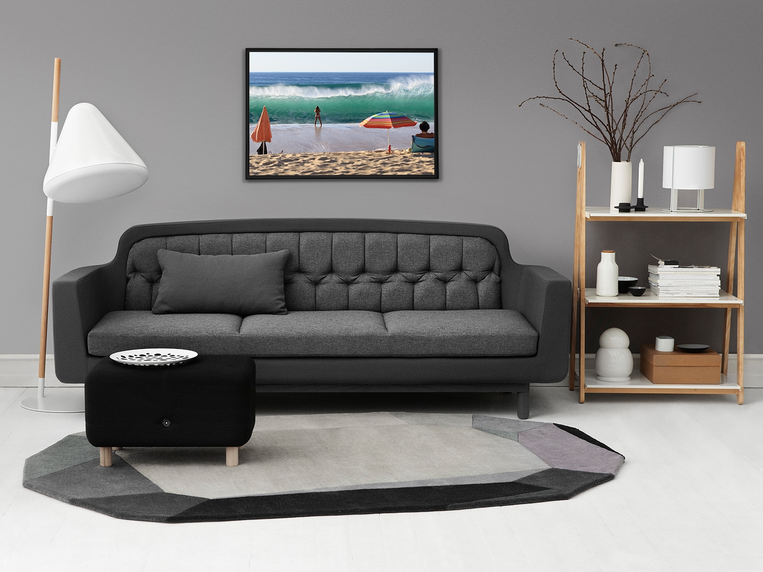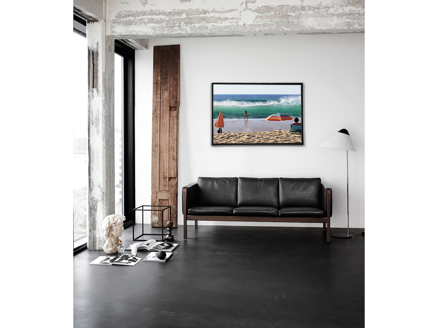 Floater frame in matt black aluminum.