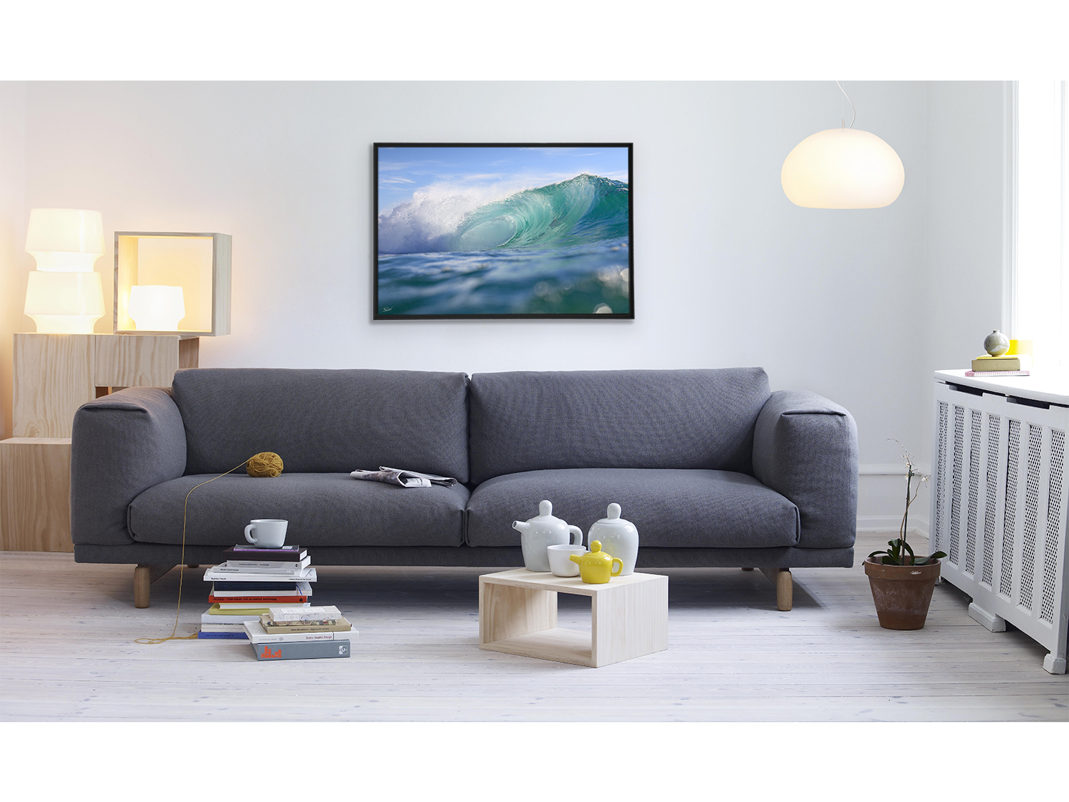 You have the possibility to choose the upmarket with the option "Lamination + floater frame"; That is to say a laminating of the plasticized print (glossy plasticization) on a support in aluminum dibond (3mm). The dibond is integrated into a 3 cm deep matt black aluminum floater frame for optimal rendering. It is a finished product, ready to hang on the wall, several anchor points.